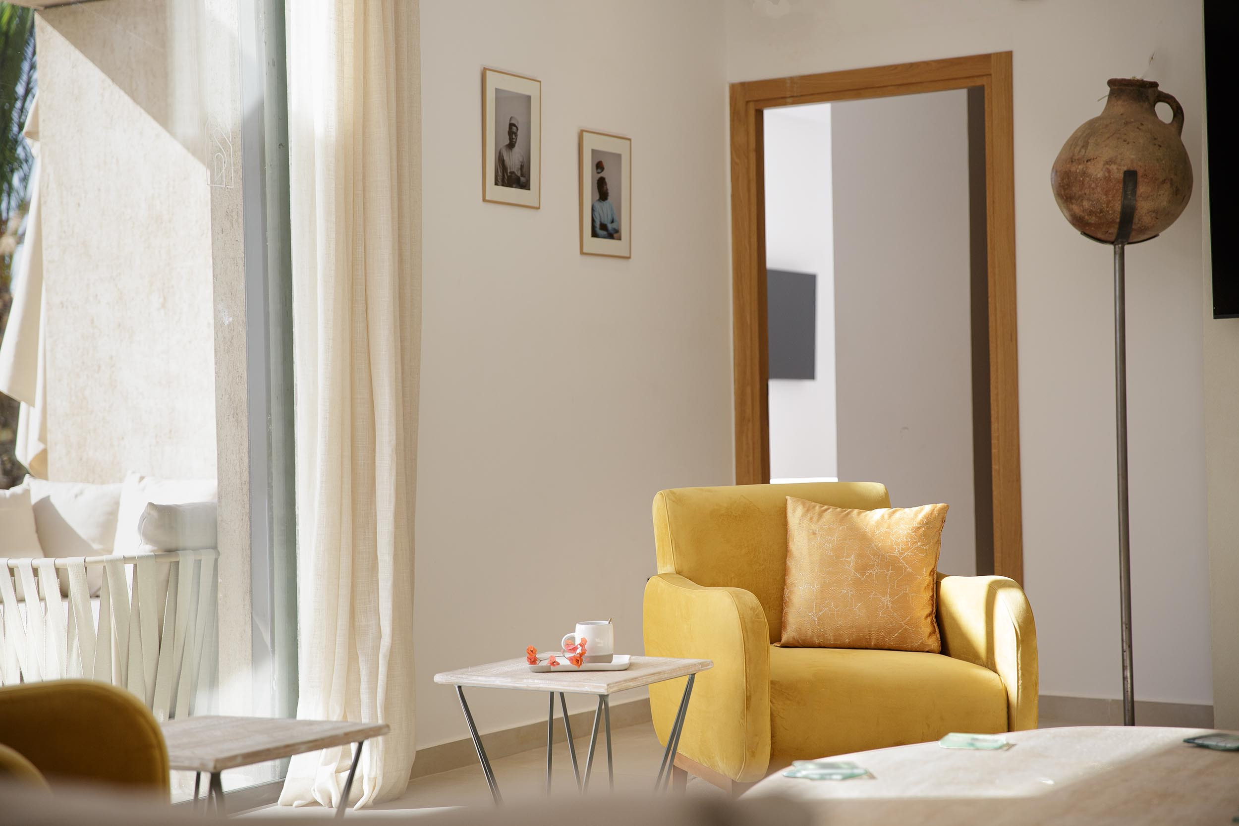 A spacious open-plan living area, adorned with artisanal decor, where natural light bathes the space.